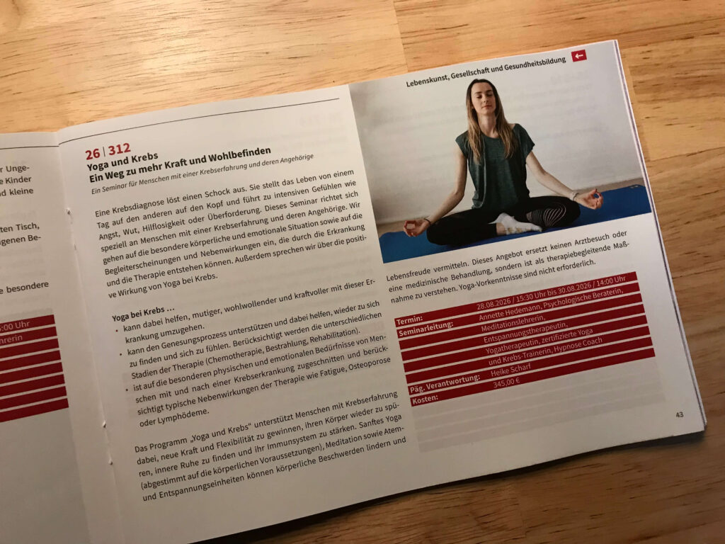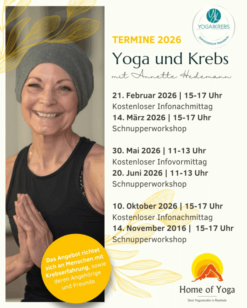 In meinen Kursen und Workshops habe ich immer wieder Frauen kennengelernt, die eine Krebsdiagnose erhalten haben. Im Herbst 2024 habe ich deshalb eine Weiterbildung Yoga und Krebs bei der Kammler Akademie absolviert, um Menschen mit einer Krebserfahrung besser unterstützen zu können.
